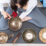 Во время практики используются тибетские поющие чаши —древний инструмент, создающий мягкие вибрации, которые проникают вглубь тела.